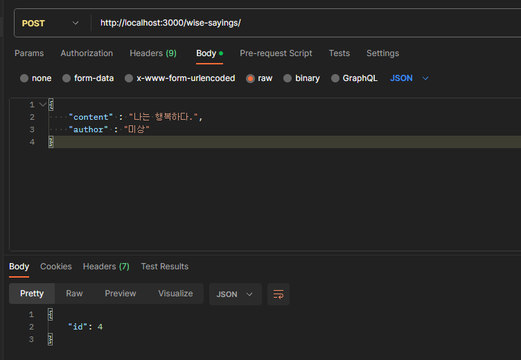- #6. 브라우저로 가보면, id: 4가 같이 출력되는 것을 확인할 수 있습니다.