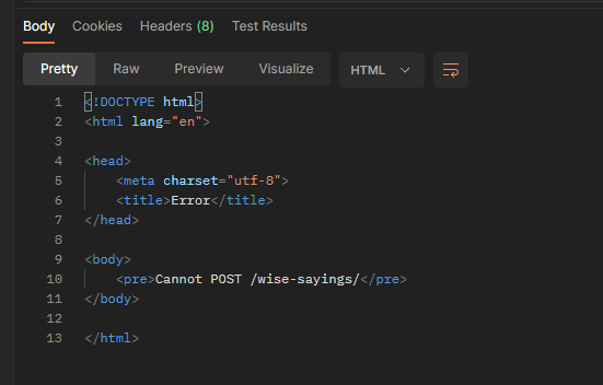 → 또한, URL을 Express.js로 만들었던 http://localhost:3000/wise-sayings/라고 입력합니다. (만들었던 코드 바로가기!)