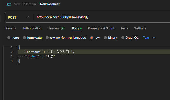 - #1. Create Collection을 클릭한 후, POST로 다음과 같이 입력합니다.