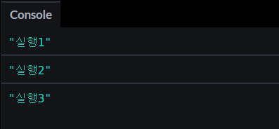 // 실행3은 바로 실행되지 않고, 3초 뒤에 실행됨